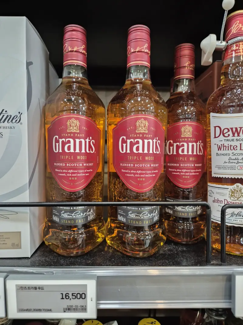 그랜츠는 글렌피딕을 설립한 윌리엄 그랜트 앤 선즈의 블렌디드 위스키입니다. 3종의 다른 캐스크에서 숙성되는 것이 특징이며, 2018년부터 패밀리 리저브에서 트리플 우드라는 이름으로 판매되고 있는 위스키입니다. 블렌디드 몰트 스카치위스키로 버진 오크 캐스크와 아메리칸 오크 캐스크 그리고 버번 리필 캐스크 세 개의 캐스크에서 숙성된 부드러운 위스키입니다. 버진 오크 캐스크는 스파이시함을, 아메리칸 오크 캐스크는 바닐라 향을 그리고 버번 리필 캐스크는 흑설탕의 향과 단맛을 제공하여 부드럽고 풍부한 맛이 나는 위스키이며, 1만 원대만원대 저렴한 위스키 중에서 가장 괜찮은 위스키가 아닐까 하는 생각이 드는 위스키입니다.