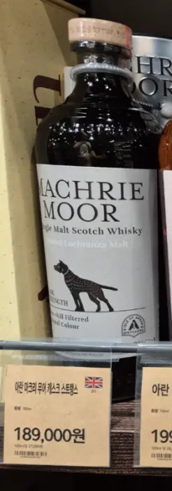 아란 싱글 몰트에 피트 스모크의 향이 더해진 제품입니다. 아란 섬의 서쪽 해안에는 마크리 무어라는 바람이 부는 신비로운 피트 습지가 있고 청동기 시대의 돌 원형과 기념비들이 황량하고 완만한 지형에 흩어져 있습니다. 이 중 하나의 돌 원형에는 전설의 거인 전사 핀갈이 그의 사랑하는 개 브란을 묶어두었다고 전해진다고 합니다. 이러한 전설을 담아낸 위스키에 마크리무어라는 이름을 지었고, 라벨에는 돌에 묶인 개 브란이 그려져 있습니다. 이 제품은 퍼스트 필 버번 캐스크에서 10년간 숙성되었고 46% 도수로 병입되었습니다. 냉각 여과나 인공 색소 없이 병입 되었고 아란 싱글 몰트의 스타일인 신선함과 함께 스모크와 흙의 풍미가 더해졌습니다. 20ppm의 피트 농도를 가진 위스키로 피트 농도가 많이 높은 편은 아닙니다.