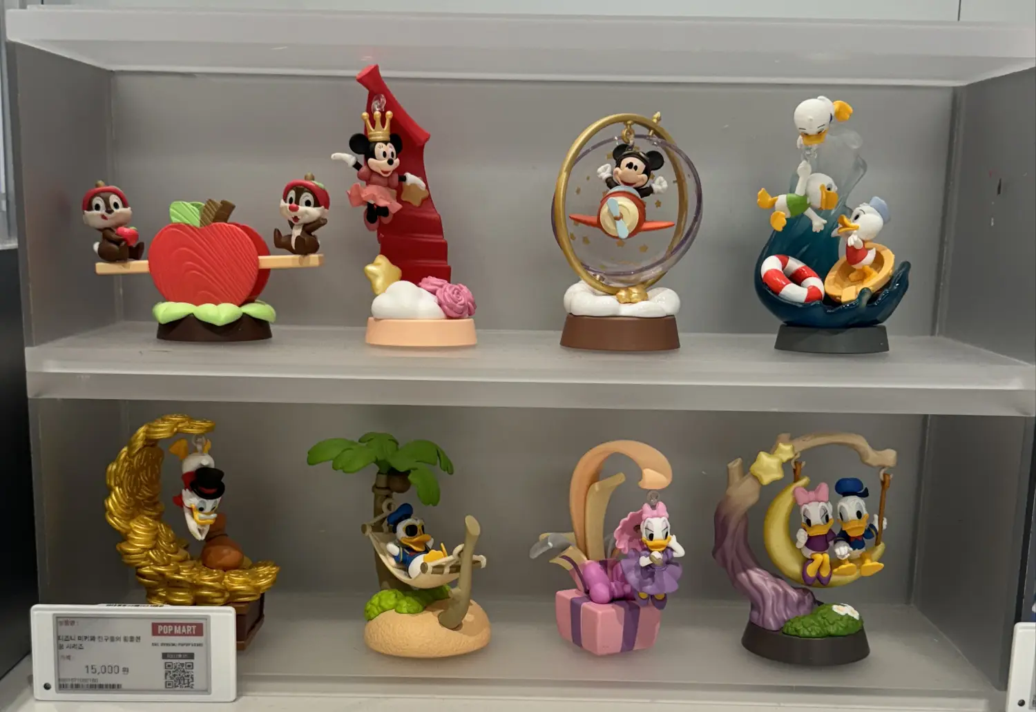 위에서 설명해드린대로 팝마트는 다른 IP 캐릭터들도 피규어로 판매하고 있어 매장에는 디즈니 공주, 미키마우스, 스누피 등 다양한 캐릭터들이 있었습니다.
