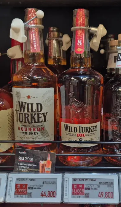 와일드 터키는 가자 주류나 와인앤모어 등 일반 주류샵뿐만 아니라 대형마트에서 손쉽게 구할 수 있는 위스키입니다. 그 중에서도 대표 제품인 와일드 터키 101과 와일드 터키 101 12년은 대형마트에서는 나쁘지 않은 가격에 구할 수 있습니다. 다른 버번 위스키에 비해 도수가 높아 자극적일 수 있지만 버번 애호가들에게 버번 특유의 강한 느낌을 잘 표현하기 때문에 매우 인기 있는 위스키이기 때문에 꼭 한번 드셔 보시기를 추천드립니다.